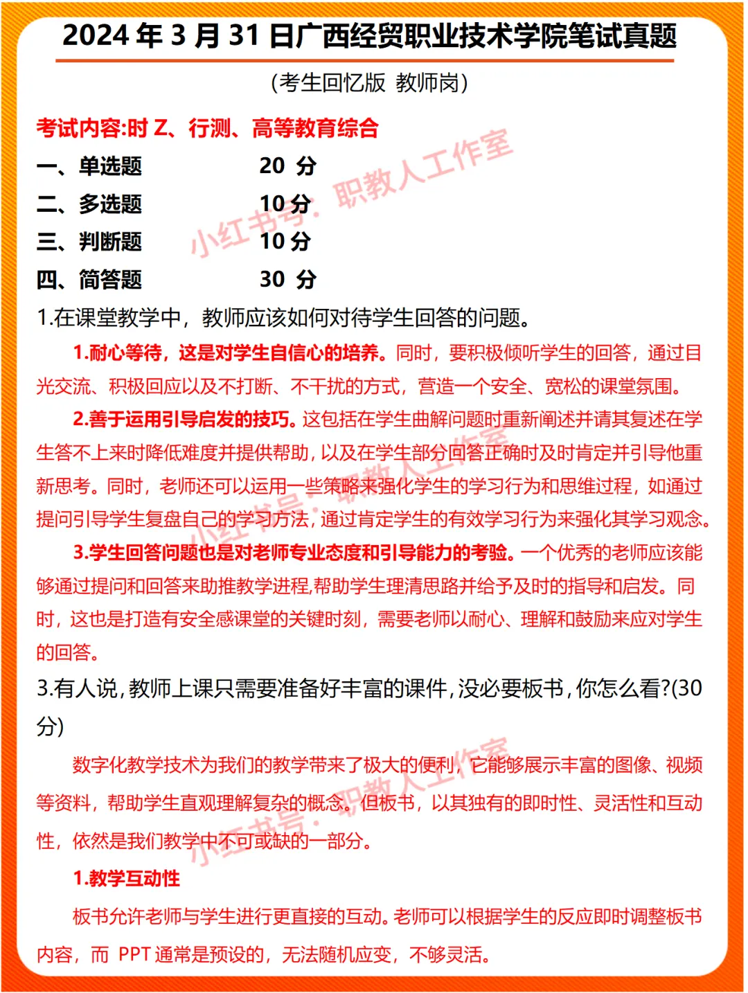 >2024年3月31日广西经贸职业技术学院笔试真题
