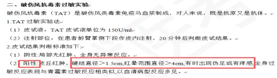 真题42.破伤风抗毒素(TAT)皮试结果阳性的表现不包括( )