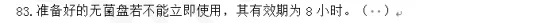 真题47.某护士在临床带教老师的指导下,正在进行无菌技术操作。其任务为铺无菌盘及戴无菌手套。铺好的无菌盘有效期不得超过()