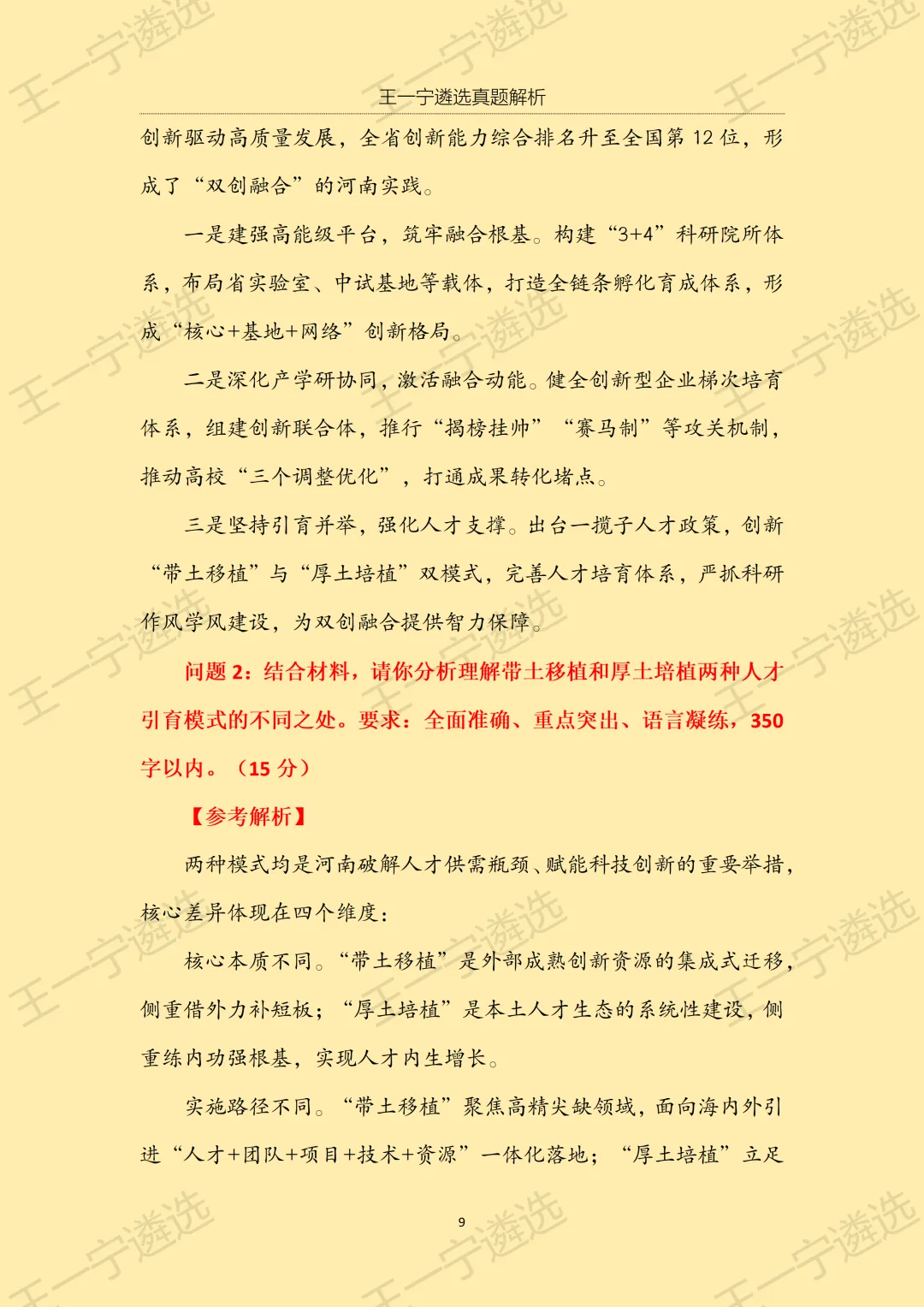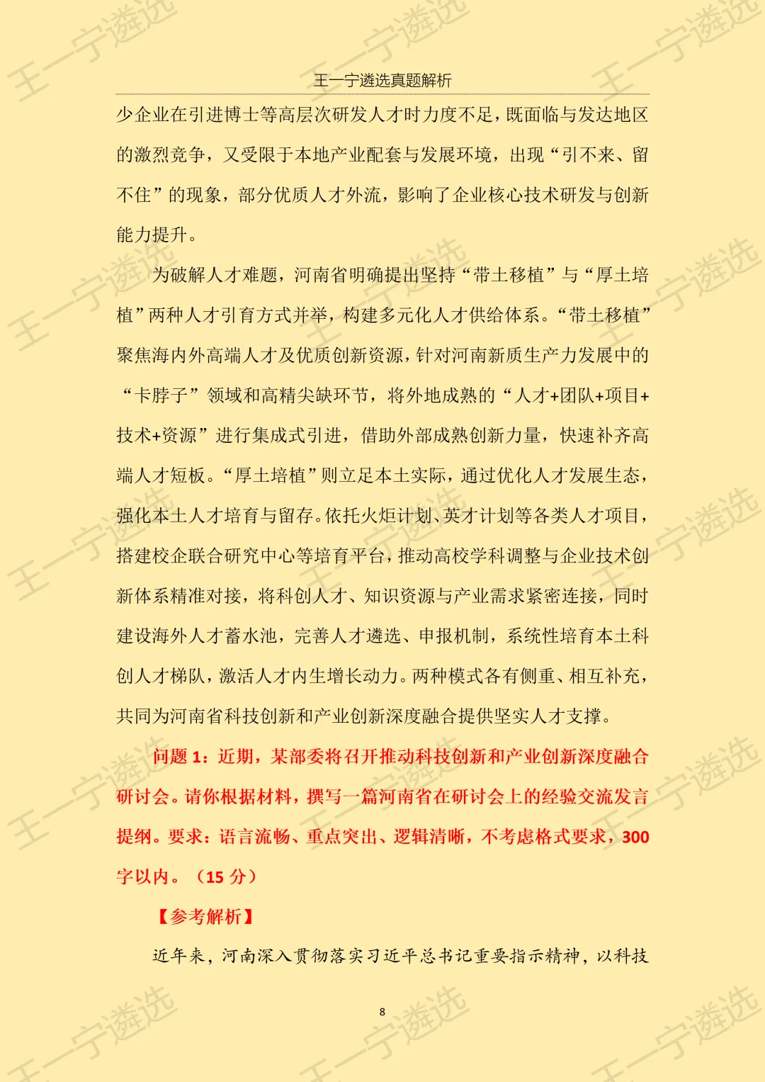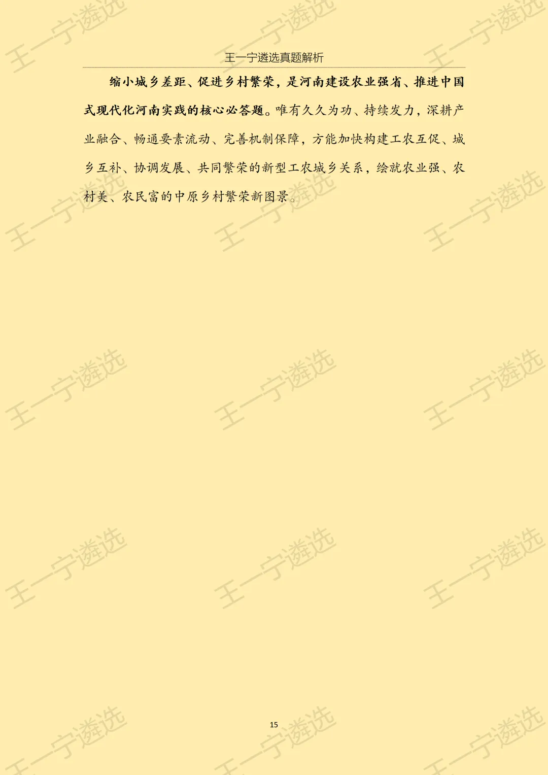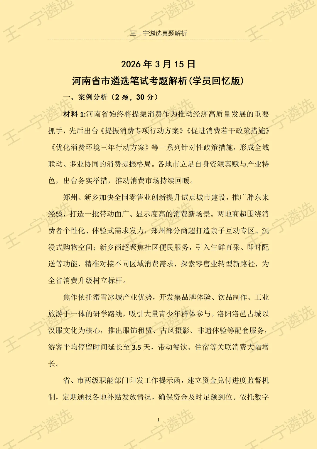 >【王一宁遴选真题解析】丨2026年3月15日河南省市遴选笔试考题解析(学员回忆版)