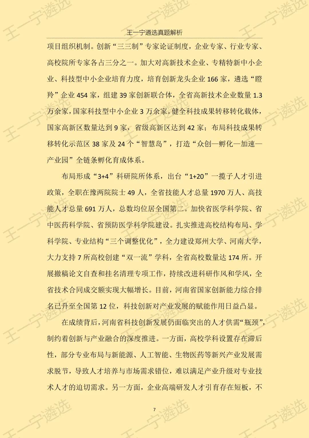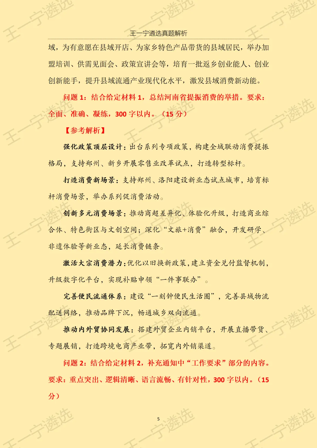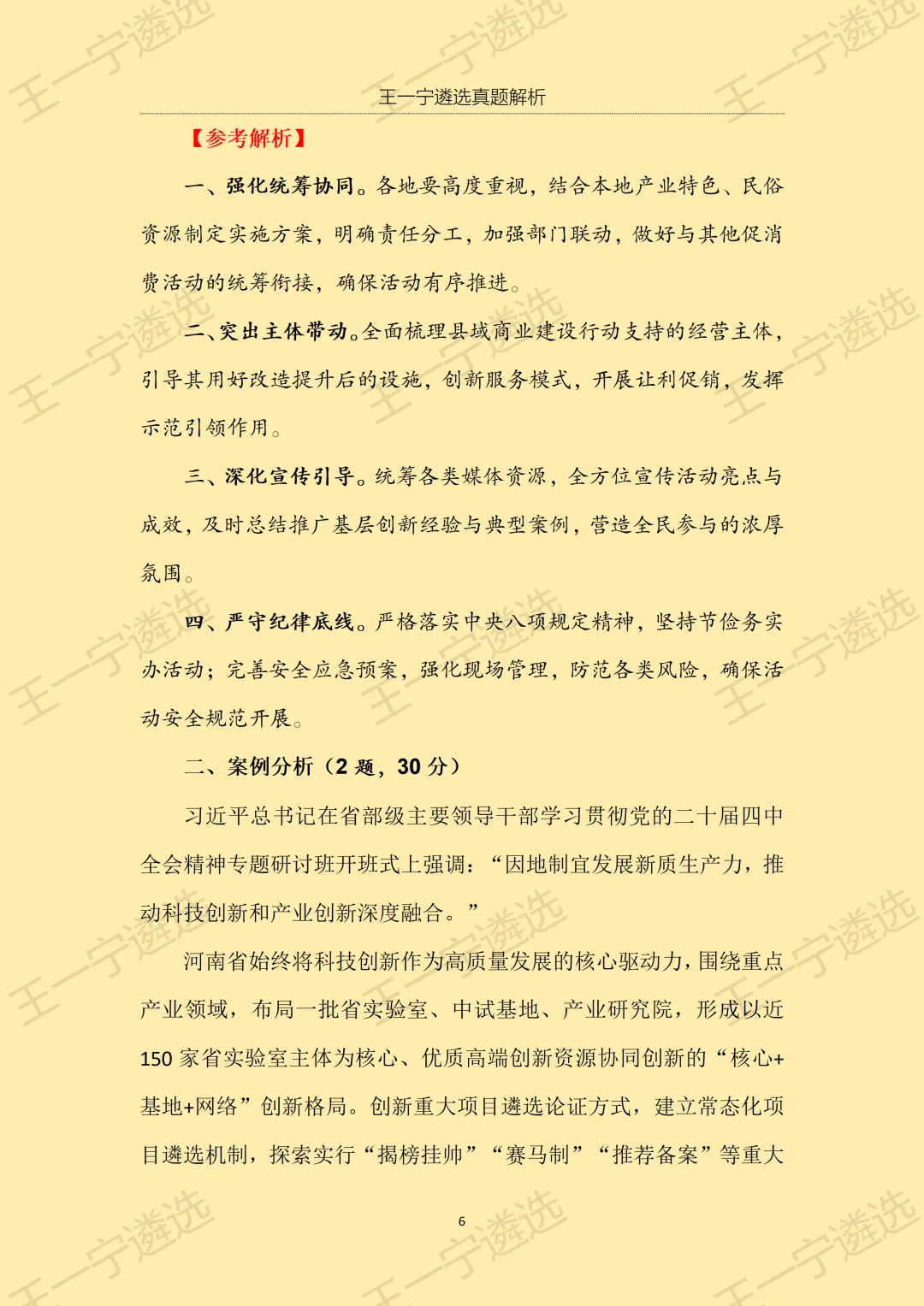 >【王一宁遴选真题解析】丨2026年3月15日河南省市遴选笔试考题解析(学员回忆版)