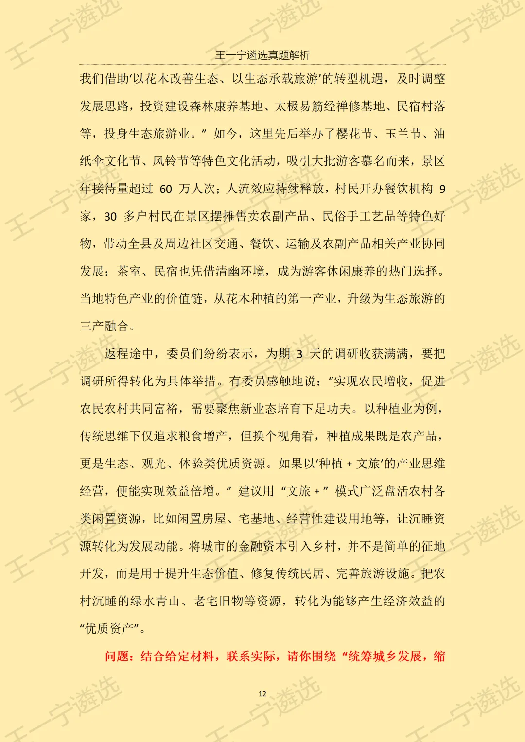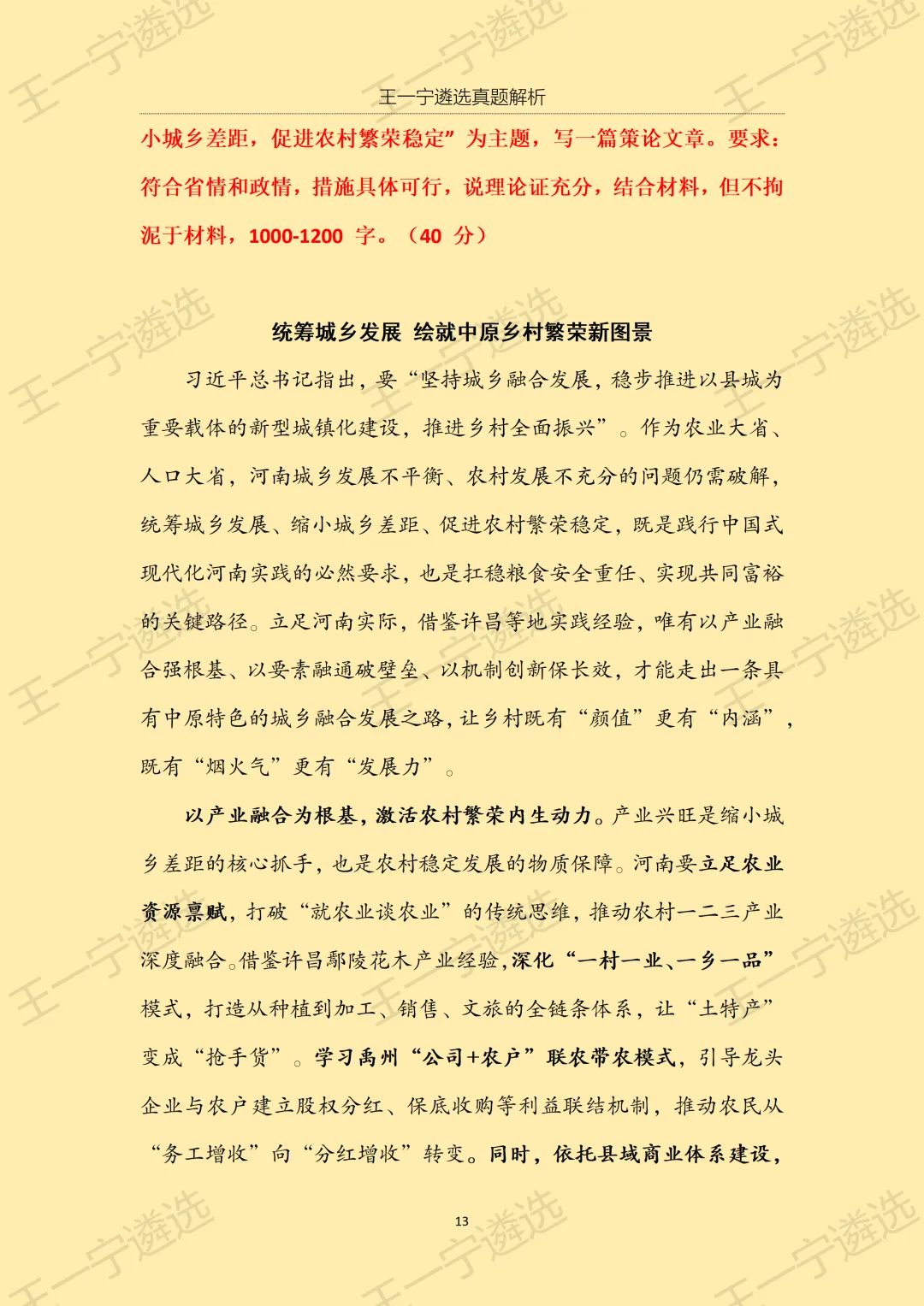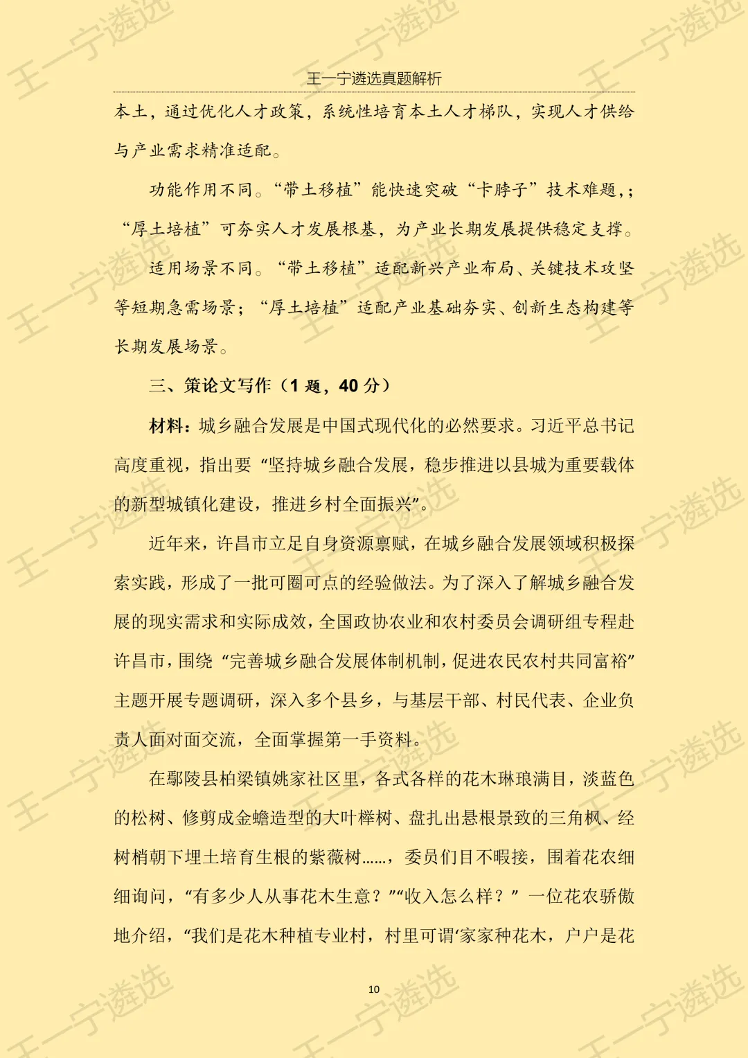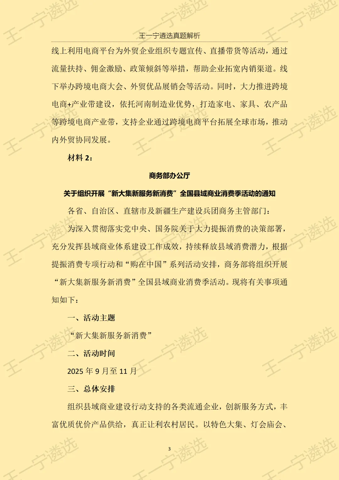 >【王一宁遴选真题解析】丨2026年3月15日河南省市遴选笔试考题解析(学员回忆版)
