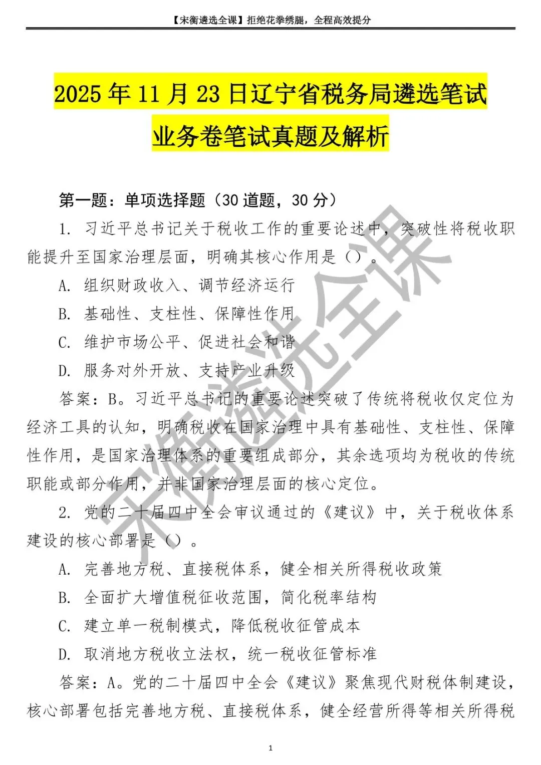 >2025年11月23日辽宁省税务局遴选笔试业务卷笔试真题及解析