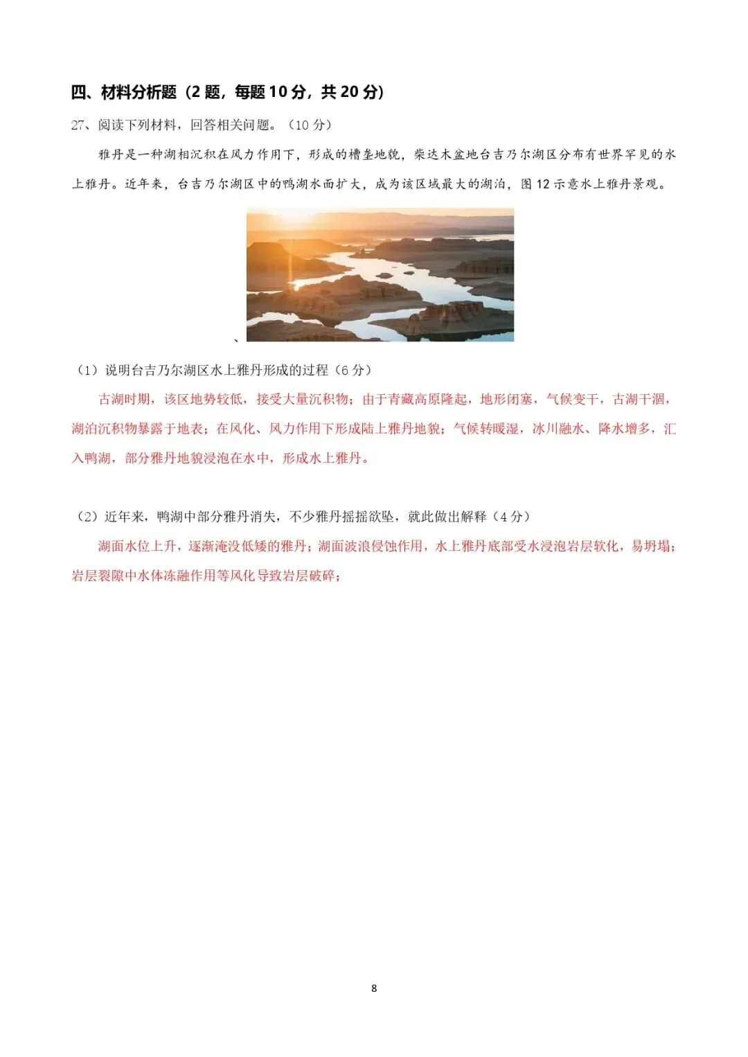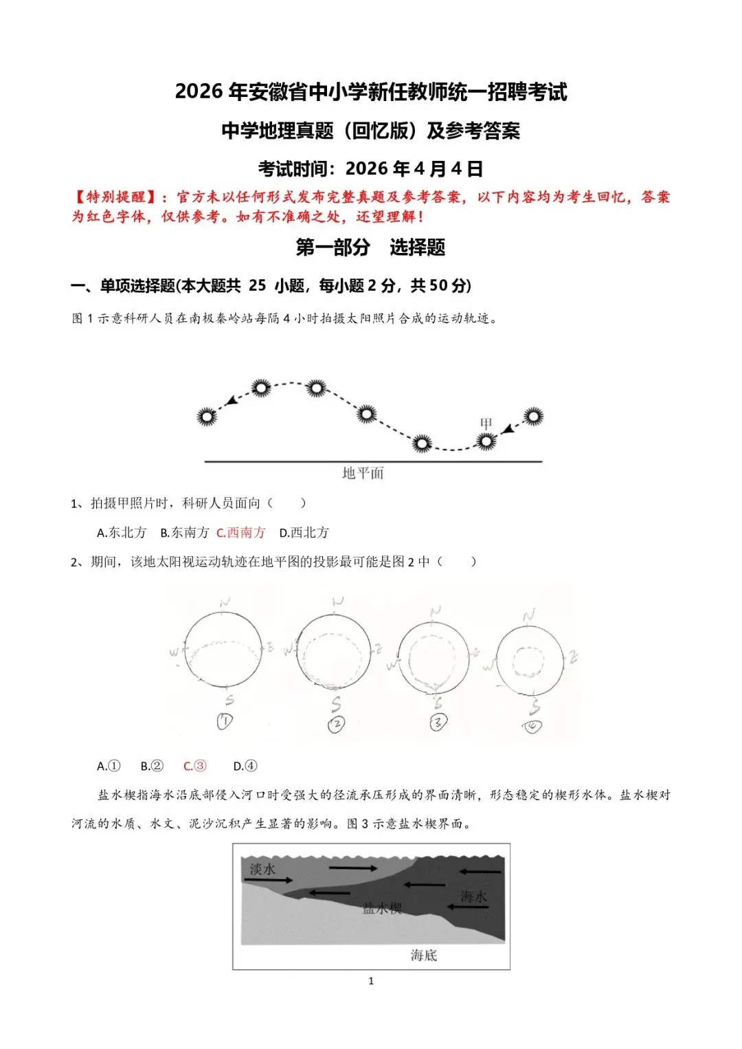 >2026年安徽教师招聘地理真题+参考答案!!!
