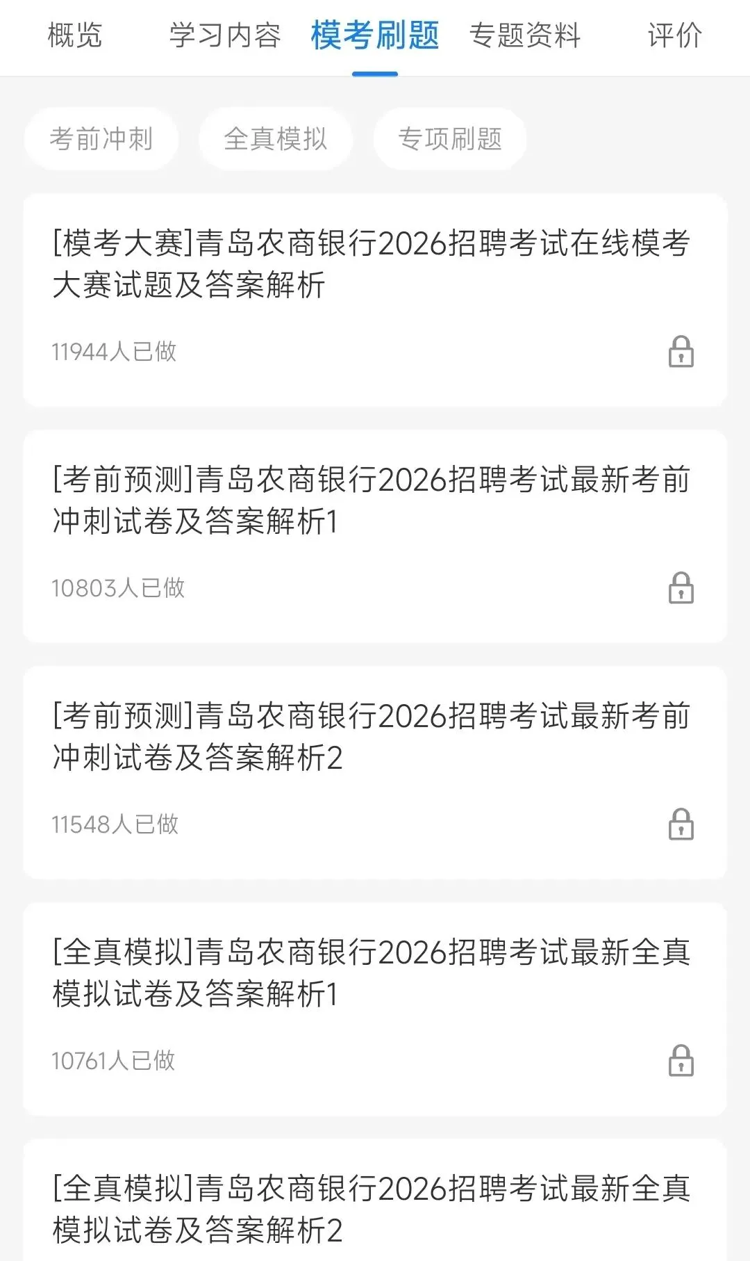 2、做青岛农商银行2026笔试考前押题套题以及全真模拟题,在线做,带倒计时