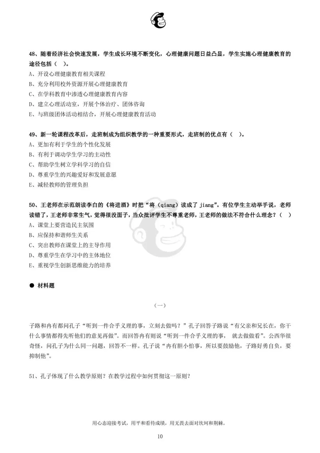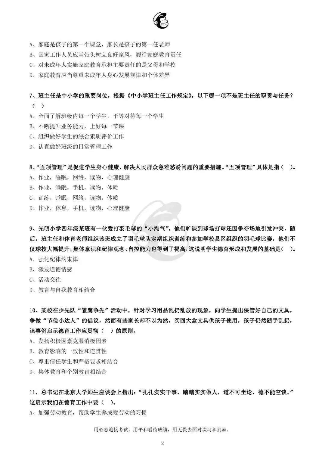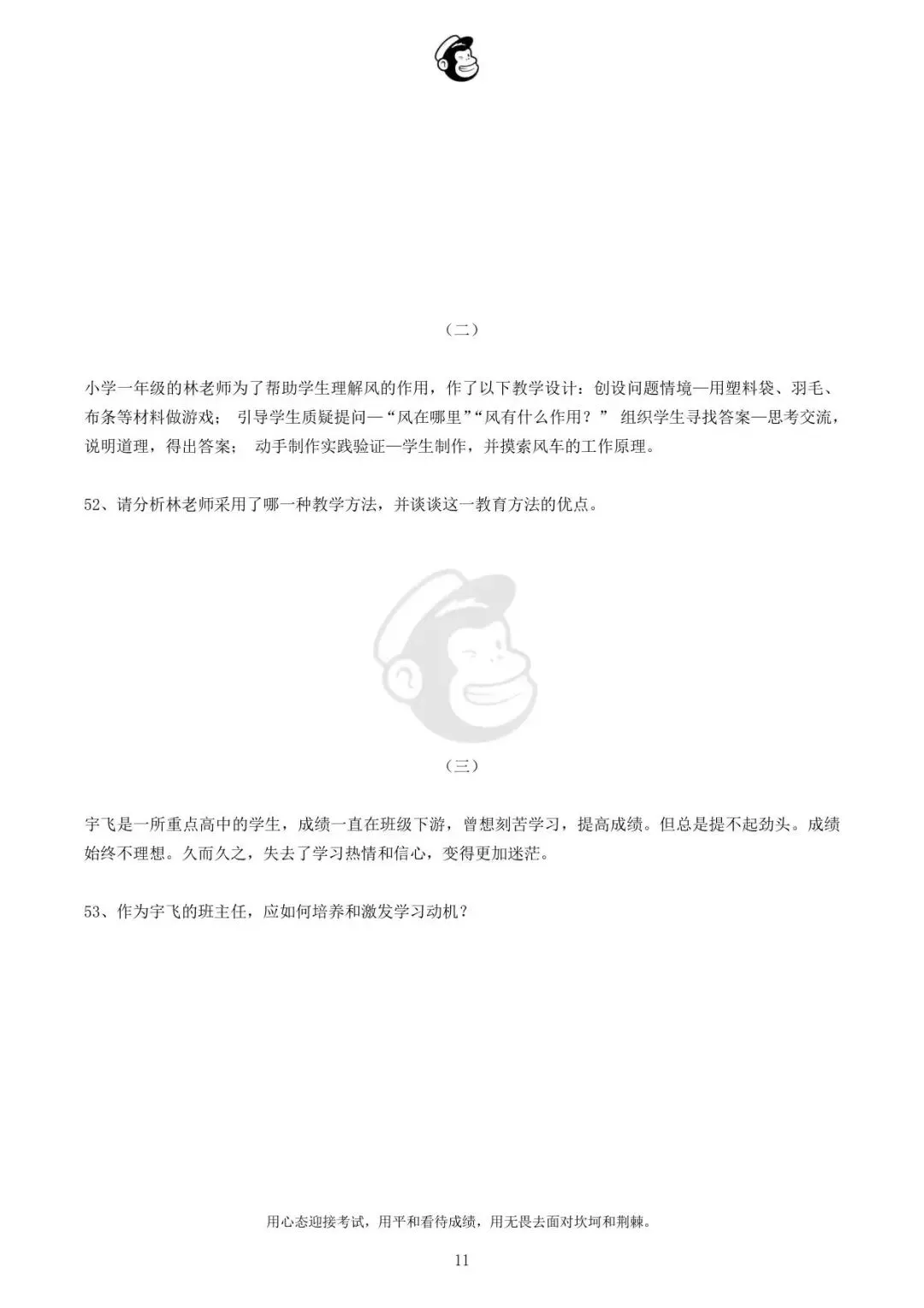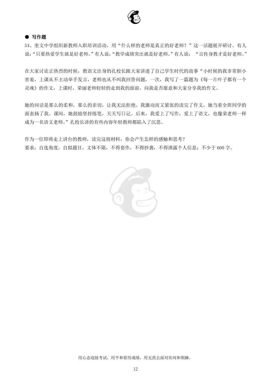 用心态迎接考试,用平和看待成绩,用无畏去面对坎坷和荆棘。