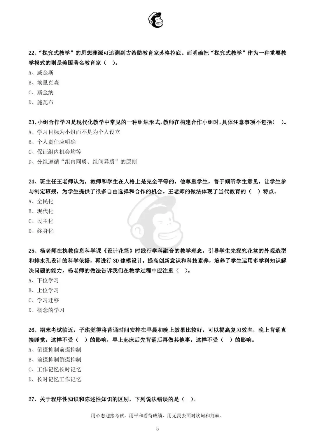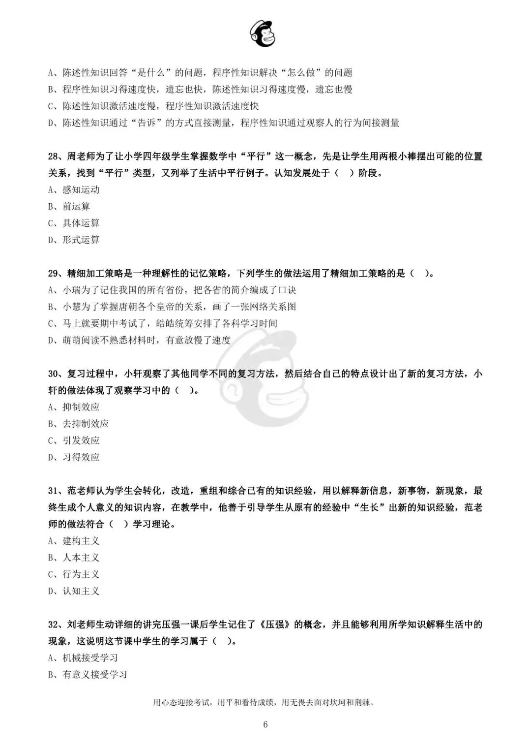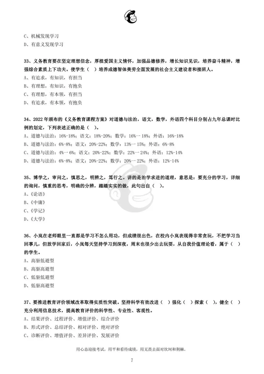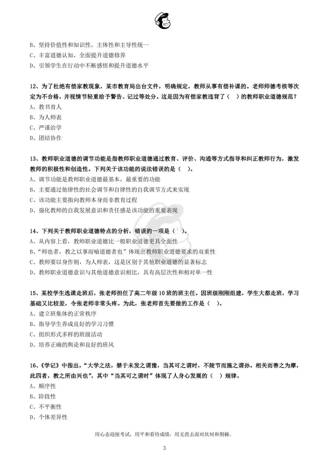 用心态迎接考试,用平和看待成绩,用无畏去面对坎坷和荆棘。