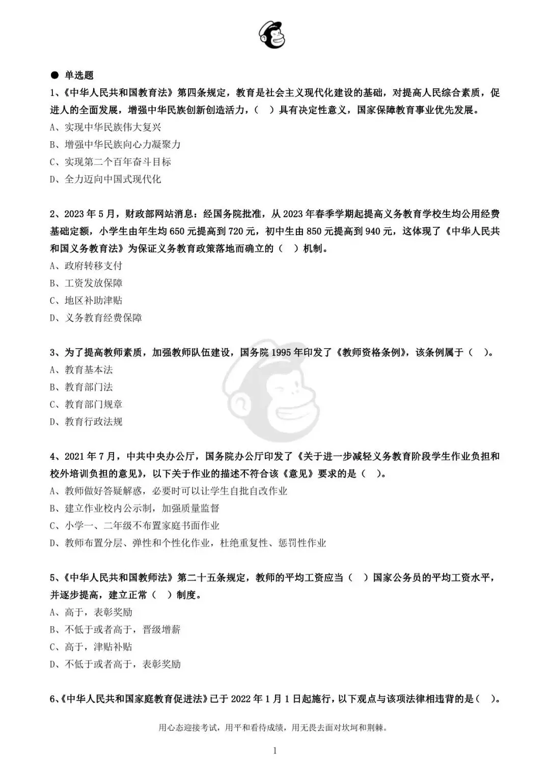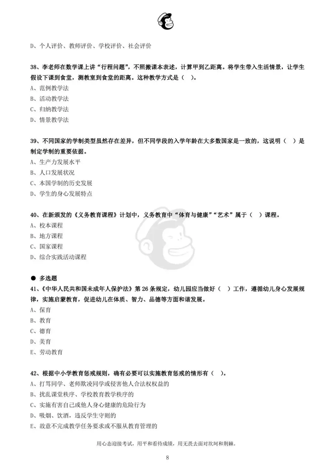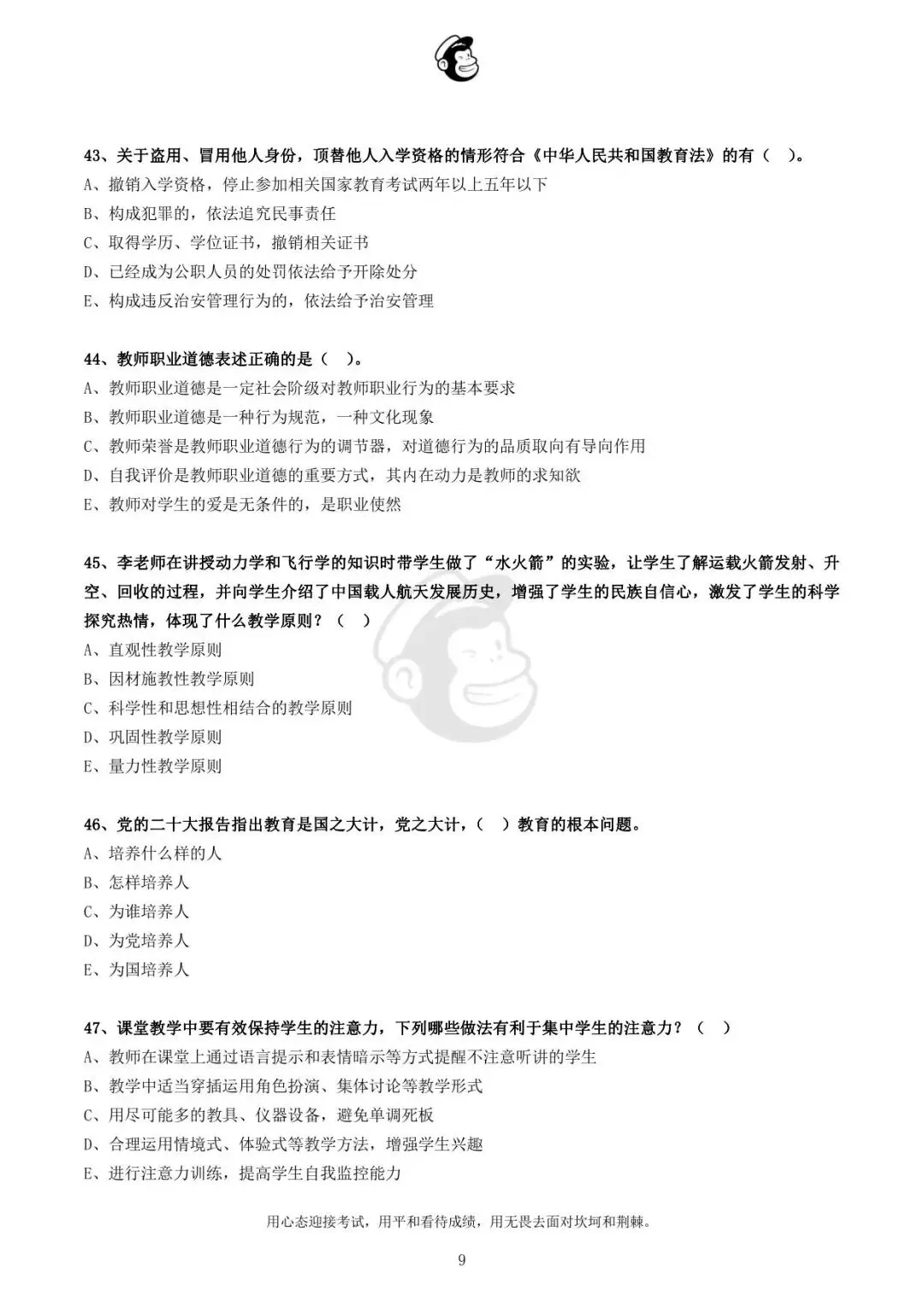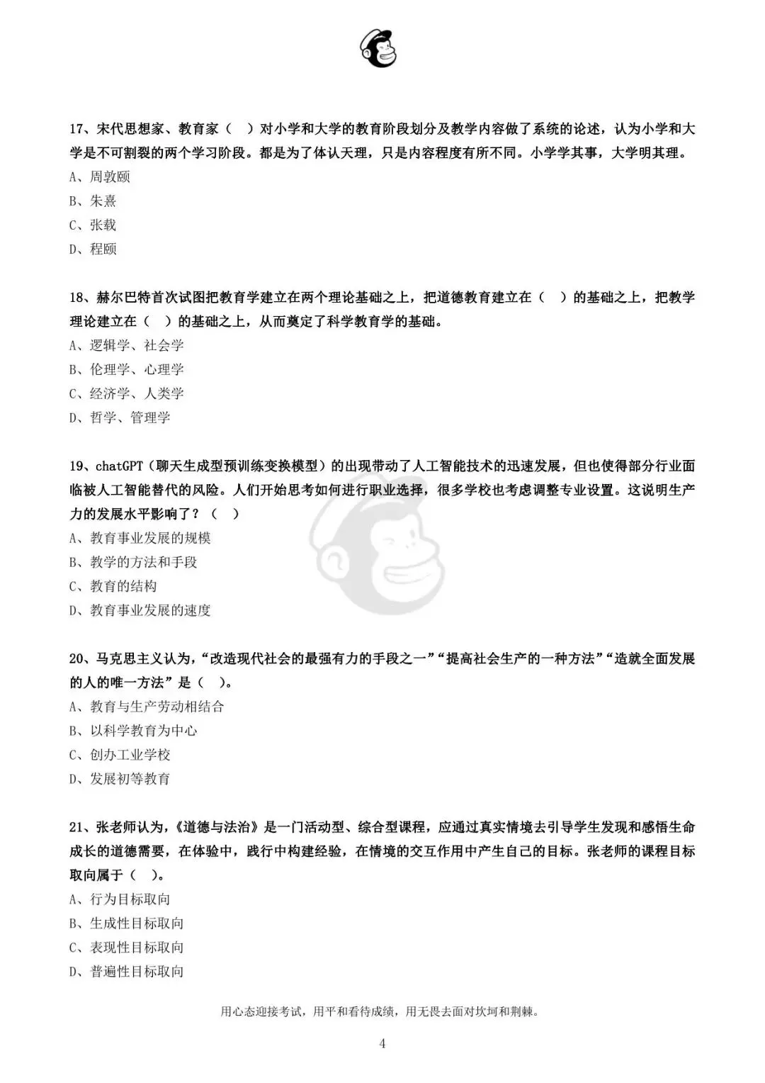 用心态迎接考试,用平和看待成绩,用无畏去面对坎坷和荆棘。