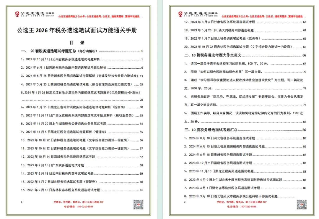20套税务遴选笔试题,26年遴选税务笔面资料