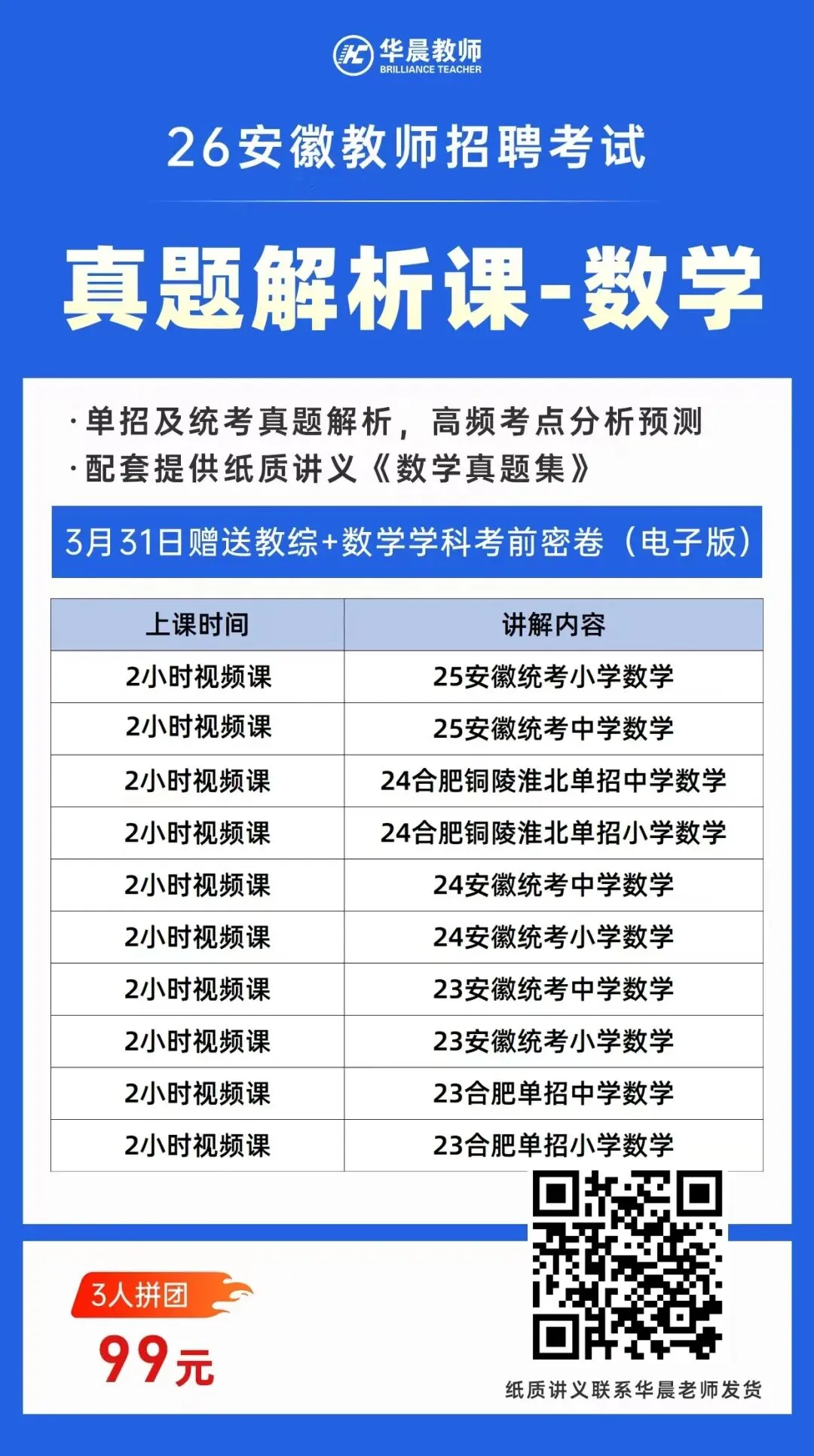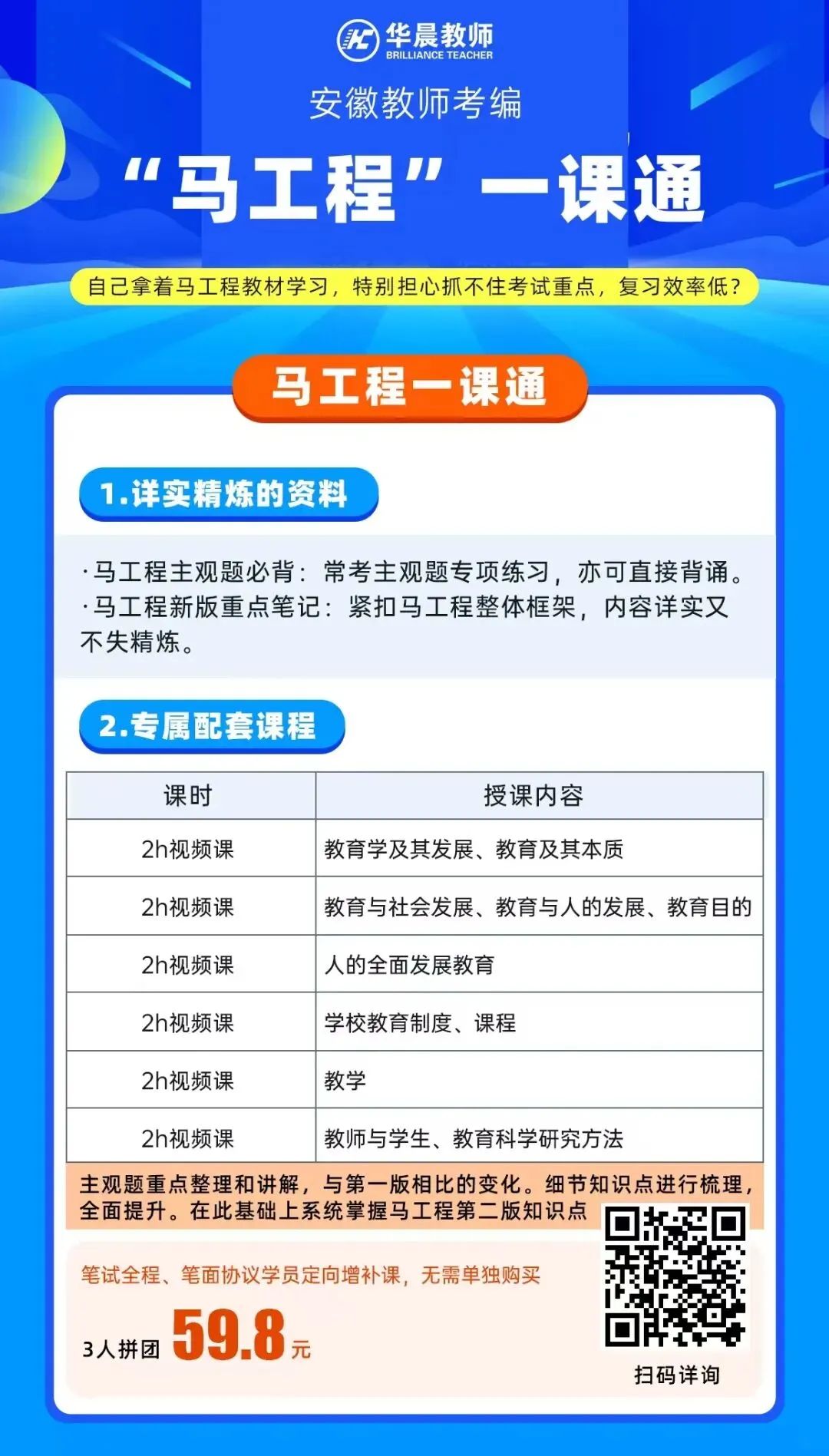 咨询安徽教师编制考情,获取备考建议,了解华晨教师培训考编课程,请加老师微信:ahhcjs999
