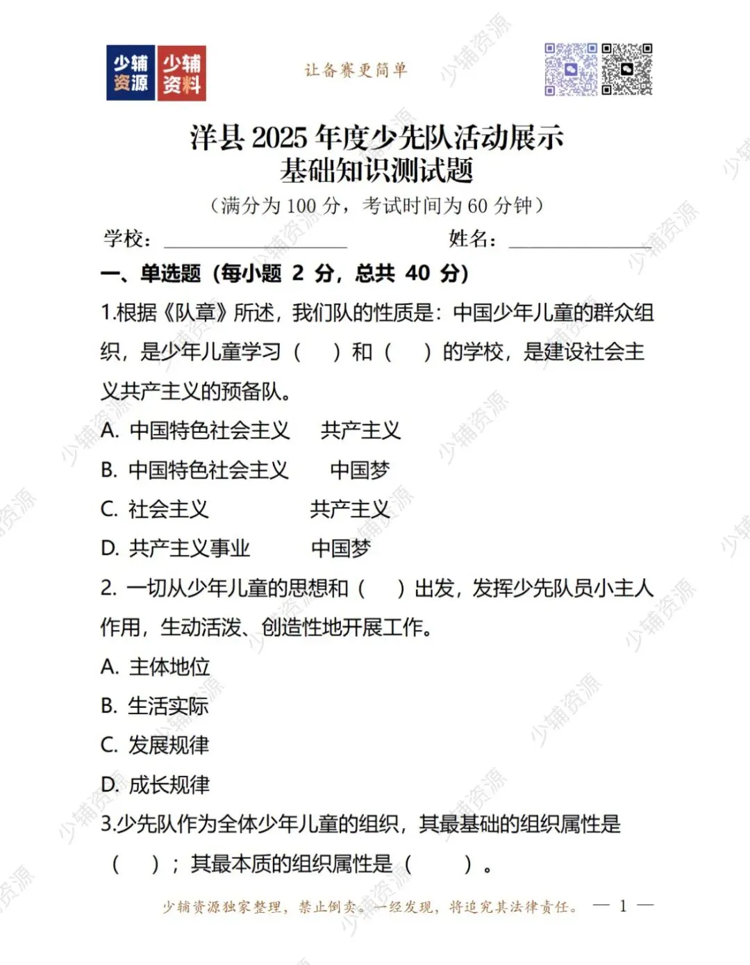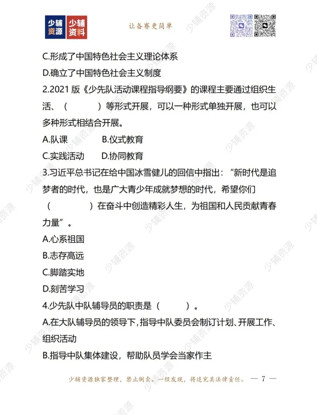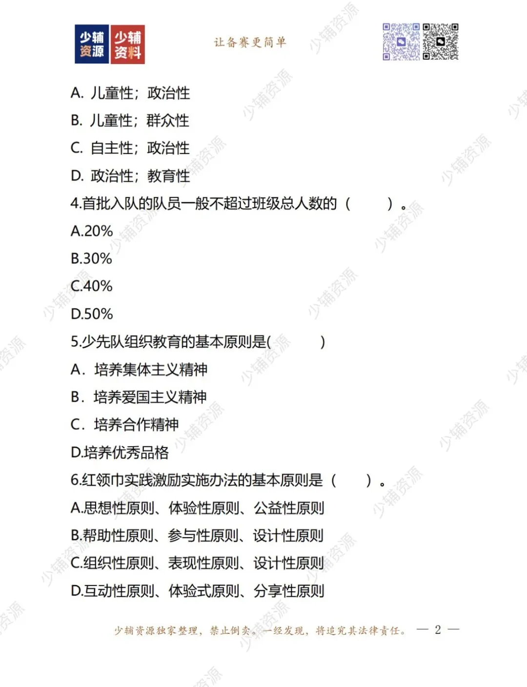 【笔试真题】2026年少先队辅导员技能大赛笔试备赛资料