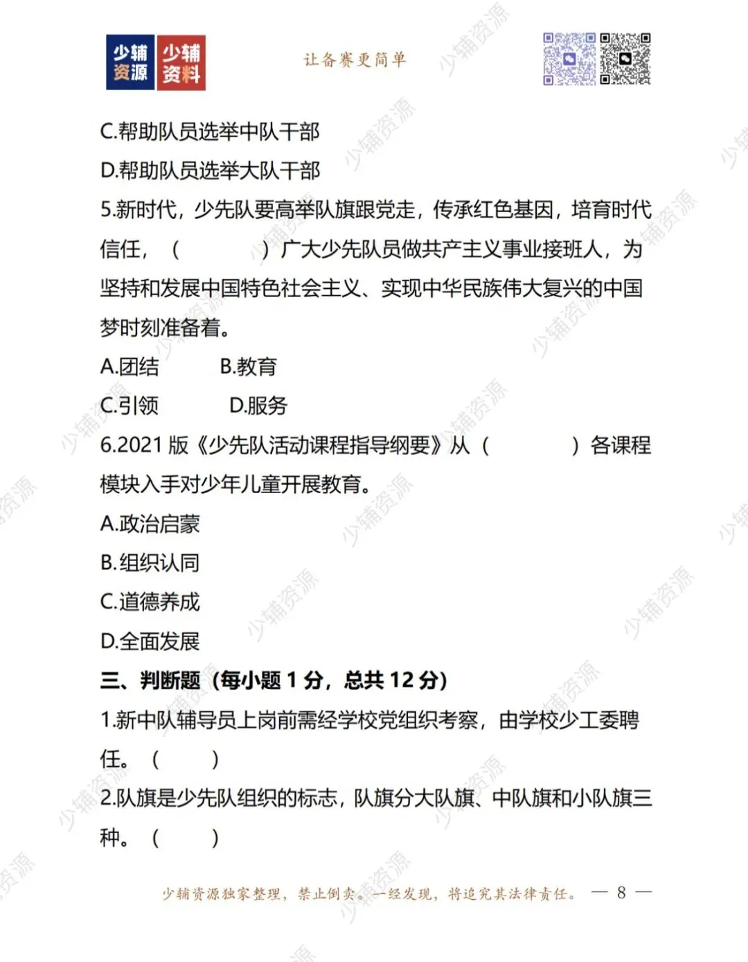 >【笔试真题】2026年少先队辅导员技能大赛笔试备赛资料