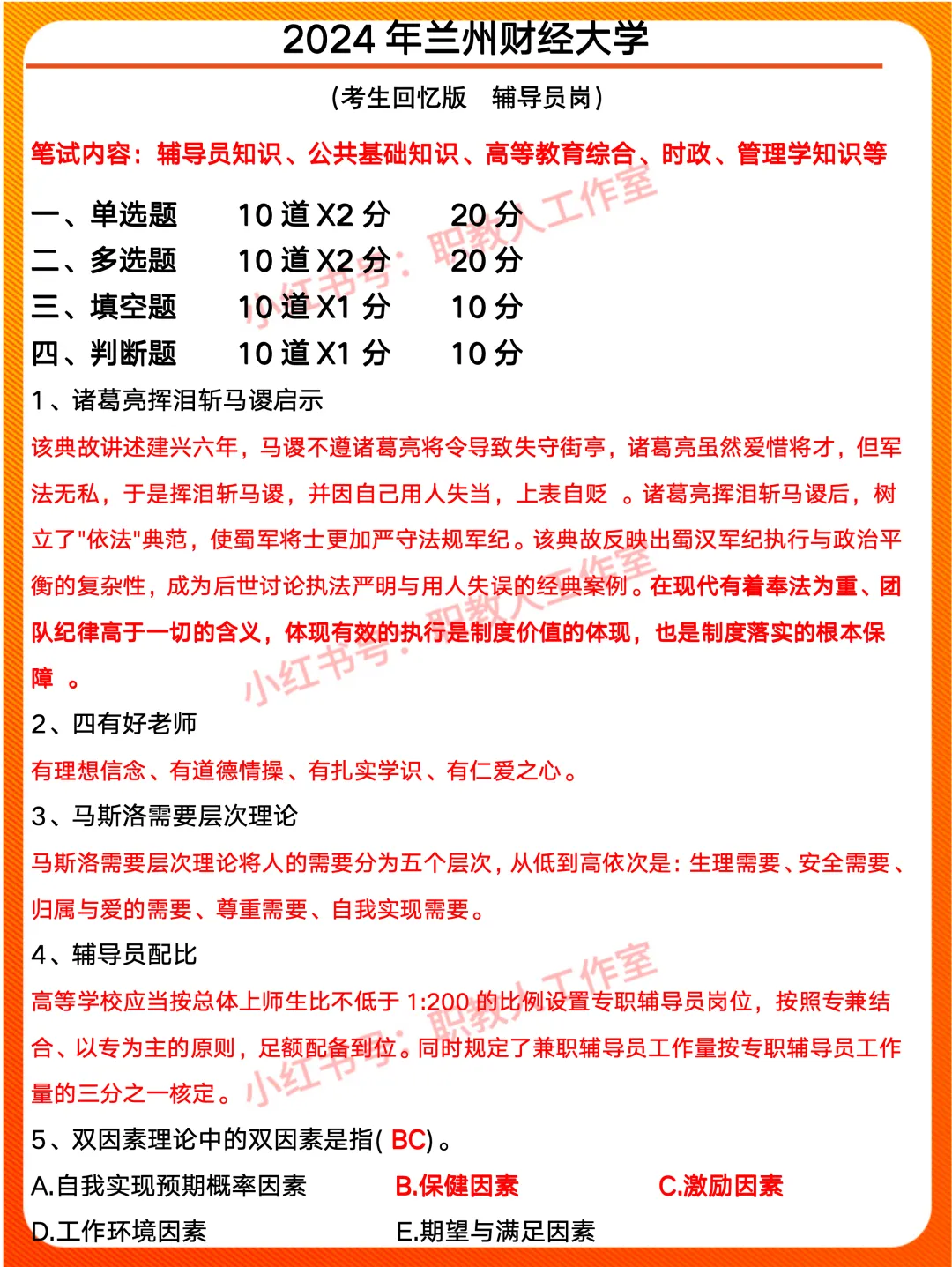 真题分享|2024年 |兰州财经大学招聘笔试真题