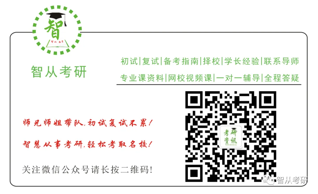 了解更多考研专业课和公共课咨询和复习资料,欢迎关注智从考研 官方公众号~