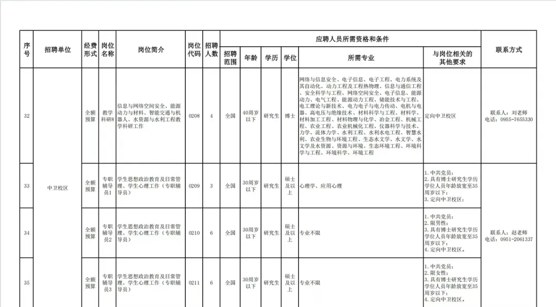 宁夏大学2024—2025年招聘的辅导员要求博士以上学历,2026年又降低了门槛,变成硕士可报(注意:定向在中卫校区!)