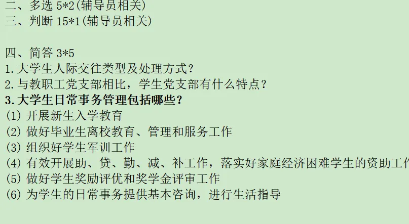 客观题考辅导员知识、党团、历史、时政相关内容,其中辅导员知识是大头,占比重较高,复习重心可适当倾斜。时政多看教育类和科技类,考试可能性较高。
