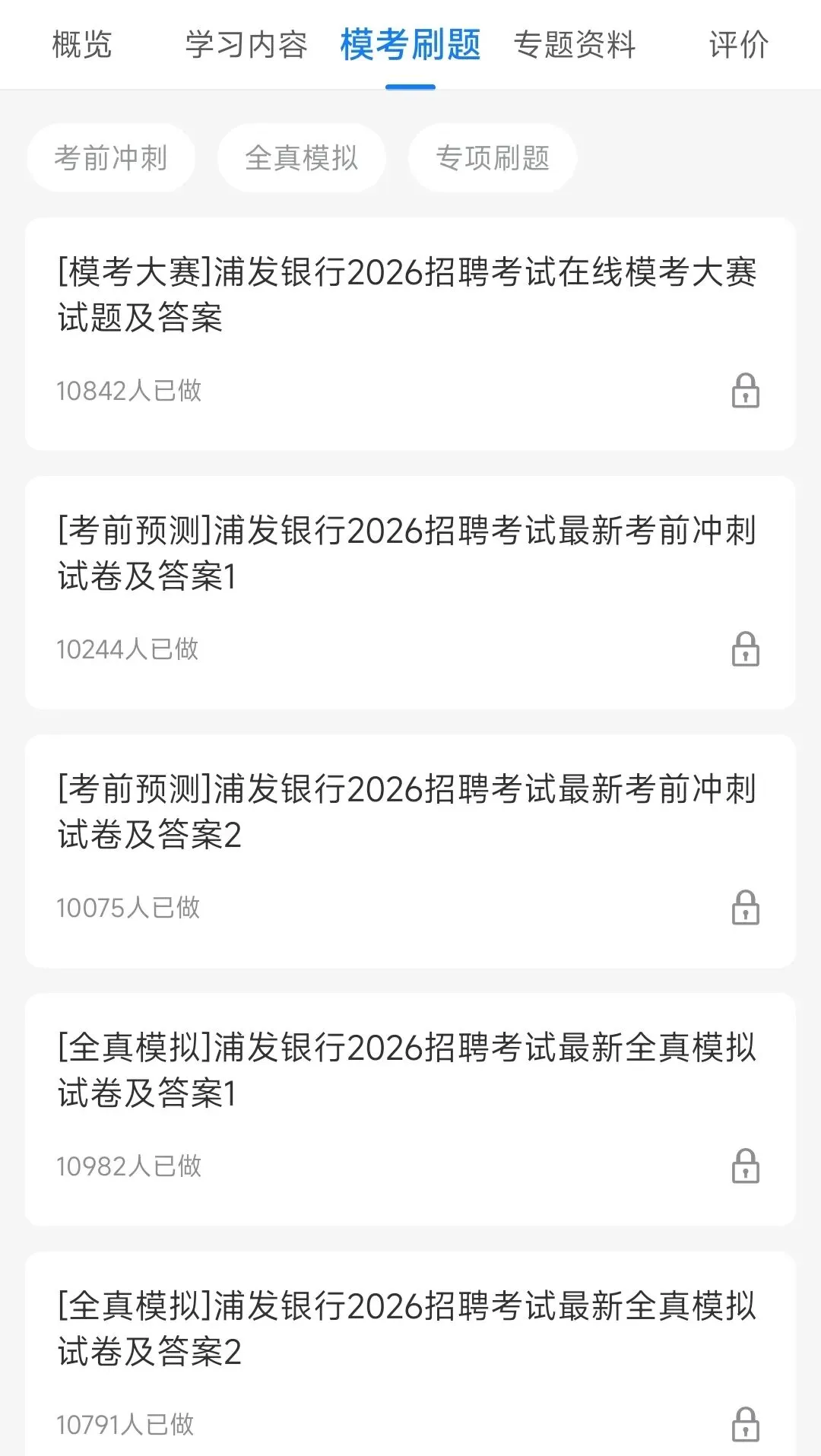 2、做浦发银行2026笔试考前预测套题以及全真模拟题,在线做,带倒计时